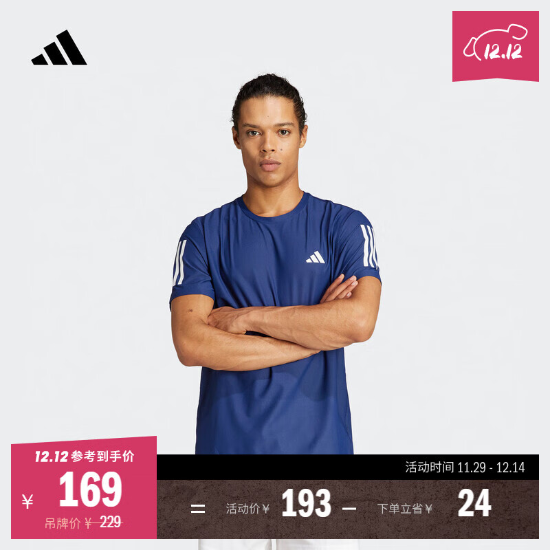 包邮 adidas舒适跑步运动上衣圆领短袖T恤男装夏季阿迪达斯官方 深蓝 S